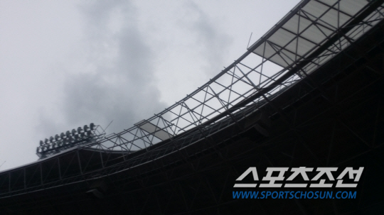 | 태풍 나크리의 매서운 바람에 광주-기아 챔피언스필드의 지붕 천정이 날아간 모습. 광주=권인하 indyk@sportschosun.com |