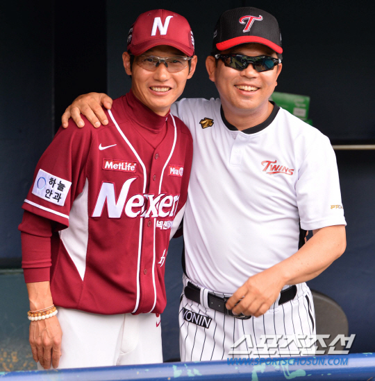 1일 오후 서울 잠실야구장에서 열릴 2014 프로야구 넥센과 LG의 경기에 앞서 염경엽 감독과 양상문 감독이 환하게 웃고 있다. 잠실=김경민 기자 kyungmin@sportschosun.com / 2014.08.01.