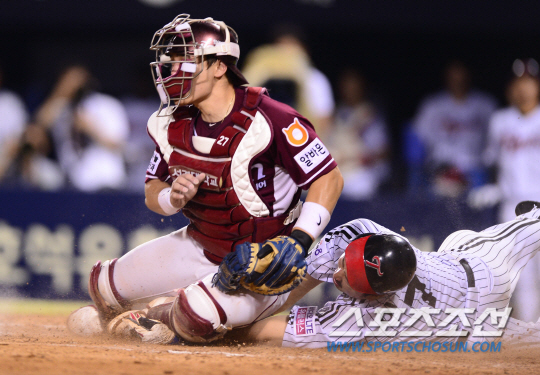 4-3으로 앞선 LG의 5회말 공격. 선두 박용택과 이병규의 연속안타와 상대 투수의 폭투로 무사 2,3루 찬스를 잡았다. 이진영이 삼진으로 물러난 뒤 채은성이 우중간 쪽으로 빗맞힌 플라이를 날렸다. 넥센 2루수 서건창이 뒤로 달려가면서 포구를 시도했지만, 타구는 그대로 그라운드로 떨어져 안타가 됐다. 이때 3루주자 박용택이 홈을 밟았고, 공이 서건창의 발을 맞고 뒤로 흐르자 2루주자 이병규도 3루를 돌아 홈으로 쇄도했다. 이 순간 넥센 우익수 이성열은 타자주자의 2루 진루를 막기 위해 베이스 커버를 들어간 유격수 강정호에게 송구했다. 공을 받은 강정호는 이병규가 홈으로 달려들자 포수 박동원에게 다시 송구했다. 이병규와 박동원의 싸움. 이병규는 헤드퍼스트슬라이딩으로 박동원의 블로킹과 태그를 피해 홈플레이트 터치를 시도했다. 문동균 구심은 아웃을 선언했다.