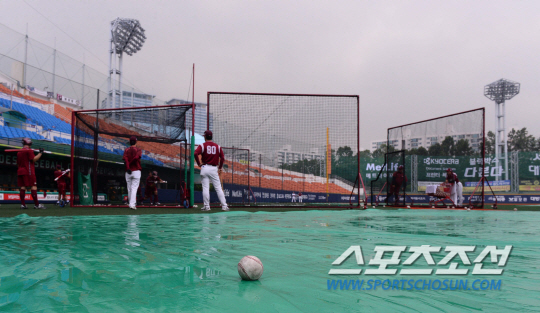 염 감독은 "선수들이 많이 지쳤다. 비가 좀 내려서 선수들이 피로를 풀었으면 좋겠다"고 했다. 그런데 염 감독의 바람대로 오후 4시쯤 빗줄기가 굵어졌고, 유남호 경기 감독관은 오후 4시20분쯤 우천 취소를 결정했다.