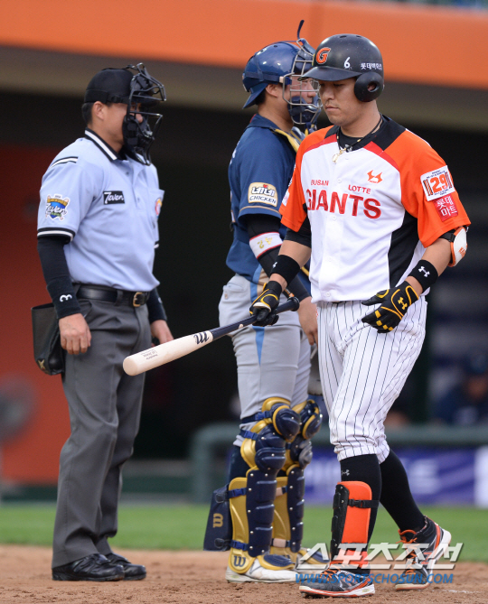 6일 열린 NC와의 서스펜디드 경기가 터닝포인트였다. 강민호는 4타수 무안타. 특히 1-2로 끌려간 8회 1사 만루 찬스에서 무기력하게 3구 삼진을 당하고 물러났다. 외야 희생 플라이만 쳐주었더라도 동점이 돼 팀 분위기를 전환할 수 있는 상황이었다. 결국 롯데는 1대3으로 역전패했다.