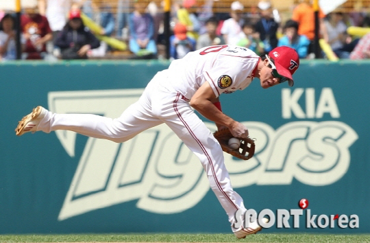KIA 타이거즈 강한울의 다이빙캐치가 8월 첫째 주 ADT캡스플레이로 선정되었다.