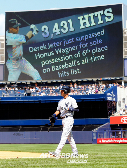 지터는 10일(한국시각) 뉴욕 양키스타디움에서 벌어진 클리블랜드 인디언스전 6회 3루수쪽 내야안타를 기록했다. 통산 2705경기에서 때린 통산 3431번째 안타이다. 이 안타로 지터는 호너스 와그너를 밀어내고 메이저리그 통산 최다안타 단독 6위에 이름을 올렸다.