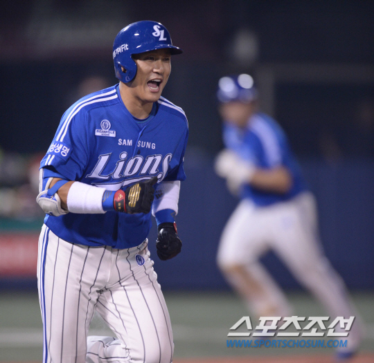 11일 오후 서울 목동구장에서 2014 프로야구 삼성과 넥센의 경기가 열렸다. 연장 10회초 2사 1,3루서 삼성 이승엽이 1타점 적시타를 친 후 환호하며 1루로 뛰어나가고 있다. 목동=김경민 기자 kyungmin@sportschosun.com / 2014.08.11. |