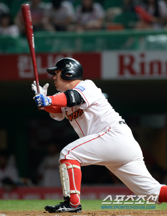 SK와 KIA의 주중 2연전 첫번째 경기가 7일 인천 문학구장에서 열렸다. 7회말 1사 1,2루 SK 이재원이 좌중간에 떨어지는 1타점 적시타를 치고 있다. 인천=허상욱 기자 wook@sportschosun.com/2014.08.07/