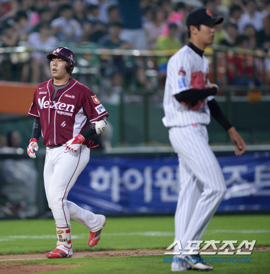 강정호는 앞선 타석에 인정 2루타를 쳤다. 심판은 처음 홈런 판정을 했지만 롯데의 합의 판정 결과, 2루타로 번복됐다.