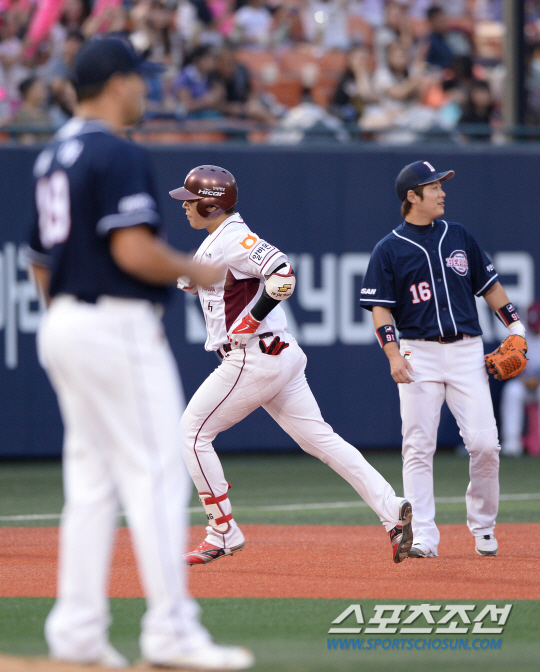 14일 서울 목동구장에서 프로야구 넥센과 두산의 경기가 열렸다. 넥센은 김대우가 두산은 마야가 선발 출전해 맞대결을 펼쳤다. 넥센 강정호가 2회 선두타자로 나와 두산 마야를 상대로 시즌 34호 우월 솔로 홈런을 날렸다. 그라운드를 돌고 있는 강정호. 목동=송정헌 기자 songs@sportschosun.com/2014.08.14