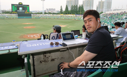 25일 오후 대구 시민야구장에서 2014 프로야구 넥센과 삼성의 경기가 열렸다. 올 시즌 은퇴와 함께 롯데 기록원으로 활동 중인 조성환이 경기를 지켜보고 있다. 대구=김경민 기자 kyungmin@sportschosun.com / 2014.06.25.