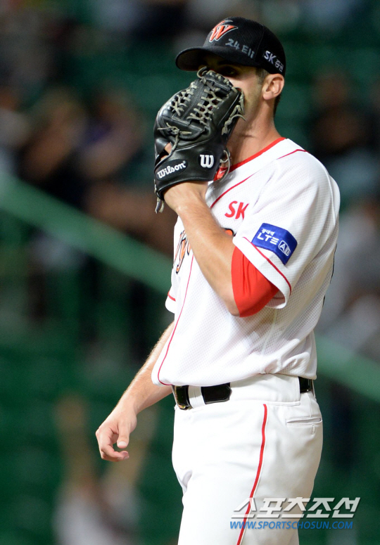 SK와 두산의 주중 2연전 첫번째 경기가 19일 인천 문학구장에서 열렸다. 6회초 2사 만루 SK 벤와트가 두산 김재호를 밀어내기 볼넷으로 출루시킨 후 아쉬워하고 있다. 인천=허상욱 기자 wook@sportschosun.com/2014.08.19/ |