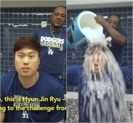 앞서 개그맨 김준호의 지명을 받은 류현진은 "부상으로 인해 아이스버킷 챌린지 동참이 며칠 늦어졌다"며 "기부도 하고 양동이 얼음물 샤워도 하겠다"라고 밝혔다.