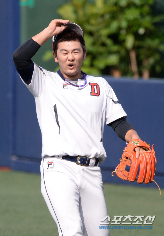 후속타자 김현수가 NC 선발 에릭의 공을 받아쳐 중앙 펜스 상단을 맞히는 큼지막한 타구를 날렸다. 1루 주자 최주환은 3루를 돌아 홈으로 향하는 순간. 전형도 주루코치가 멈춤신호를 줬다.