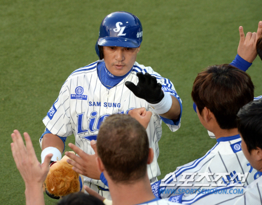 1-2위를 달리고 있는 삼성과 넥센이 30일 대구구장에서 만났다. 2회말 삼성 이승엽이 넥센 김대우의 투구를 받아쳐 우측담장을 넘어가는 선제 솔로홈런을 날렸다. 동료들과 기쁨을 나누는 이승엽. 대구=허상욱 기자 wook@sportschosun.com