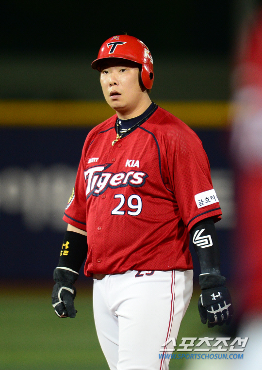 KIA 타이거즈 4번타자 나지완이 무릎통증으로 경기에 빠졌다.