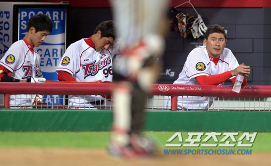 24일 오후 광주 기아챔피언스필드에서 2014 프로야구 LG와 KIA의 경기가 열렸다. 1군에 복귀한 KIA 서재응이 경기를 지켜보고 있다. 광주=김경민 기자 kyungmin@sportschosun.com / 2014.07.24. |