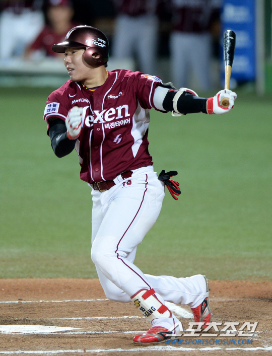 왜 미국과 일본 에이전트들이 넥센 히어로즈 유격수 강정호(27)를 주목할까. 요즘 강정호가 출전하는 야구장 마다 꾸준히 10명 이상의 미일 야구 관계자가 찾는다. 그는 활동량이 많은 유격수 수비를 보면서도 국내 특A급 타자 반열에 올라 있다. 한마디로 공수가 모두 가능한 영양가 만점의 선수이기 때문에 해외 팀들도 그에게 큰 관심을 갖고 있는 것이다. 1-2위를 달리고 있는 삼성과 넥센이 30일 대구구장에서 만났다. 6회초 넥센 강정호가 3루수 강습 내야안타를 치고 있다. 대구=허상욱 기자 wook@sportschosun.com/2014.08.30/ |