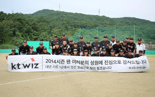 프로야구 10번째 막내 구단, kt 위즈가 프로 첫 데뷔 시즌을 성공적으로 마쳤다. kt는 2일 벽제구장에서 열린 경찰야구단과의 2014년 퓨처스리그 마지막 경기에서 6대3으로 승리, 5개월간의 대장정을 마쳤다. 88경기에서 41승10무37패, 북부리그 3위. 퓨처스리그는 성적은 크게 중요하지 않다. 내년 시즌 1군 리그에 참가하기 위한 기반을 잘 다졌다는 것에 의미가 있다.