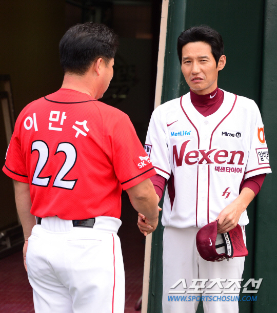 2014시즌 국내프로야구 페넌트레이는 이제 정말 손가락으로 카운트다운을 해도 될 정도로 얼마 남지 않았다. 팀별로 20경기 내외로 남았다. 이번 추석 연휴가 끝나고 나면 10경기대로 준다. 그런데 아직 막판 순위 싸움이 한창이다. 4위 싸움은 한달째 안개에 가려져 있고, 최근엔 삼성이 주춤하면서 1위 자리도 위태로울 수 있다는 얘기까지 나왔다. 전문가들은 지금이 감독들의 용병술을 평가할 수있는 적기라고 말한다. 5일 서울 목동구장에서 프로야구 넥센과 SK가 주중 2연전 첫 경기를 펼쳤다. 넥센은 소사가 SK는 김대유가 선발 출전한다. 경기 전 SK 이만수 감독과 넥센 염경엽 감독이 인사를 나누고 있다. 목동=송정헌 기자 songs@sportschosun.com/2014.08.05 |