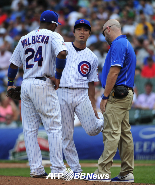 메이저리그 시카고 컵스 좌완 선발 투수 와다 츠요시가 왼다리 통증으로 시즌 5승 도전에 실패했다.