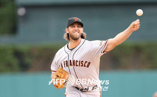 7일(한국시각) 시즌 17승을 올린 샌프란시스코 좌완 매디슨 범가너가 디트로이트전에서 역투하고 있다. ⓒAFPBBNews = News1