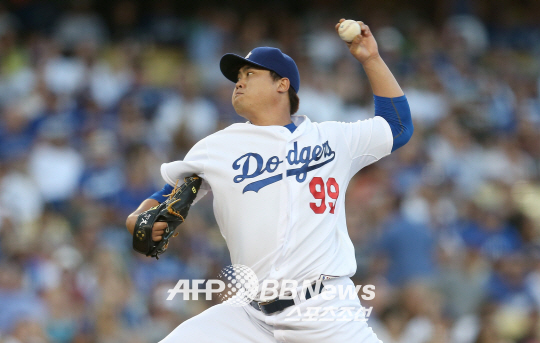 7일(한국시각) 애리조나와의 홈경기에서 역투하고 있는 LA 다저스 류현진. ⓒAFPBBNews = News1
