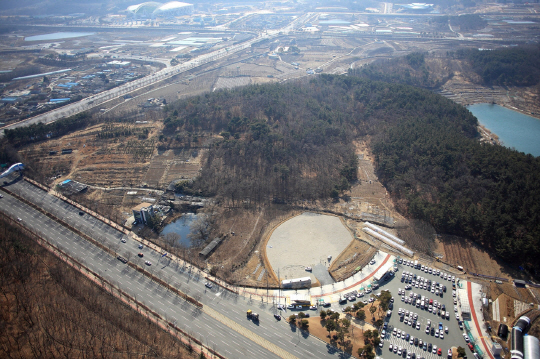 2013년 2월의 신축구장 부지 항공사진 전경 촬영분. 지질 조사, 문화재 시·발굴 조사 등이 진행되던 시점. 이 시기에 신축구장 부지에 외형상의 변화는 느껴지지 않는다. 사진제공=삼성라이온즈