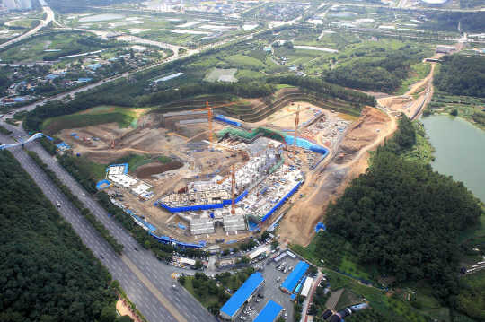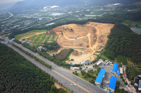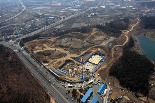 2013년 12월 촬영. 산을 거의 다 깎아낸 모습이며, 아직 야구장의 틀은 갖추지 못하고 있는 상태다. 사진제공=삼성라이온즈