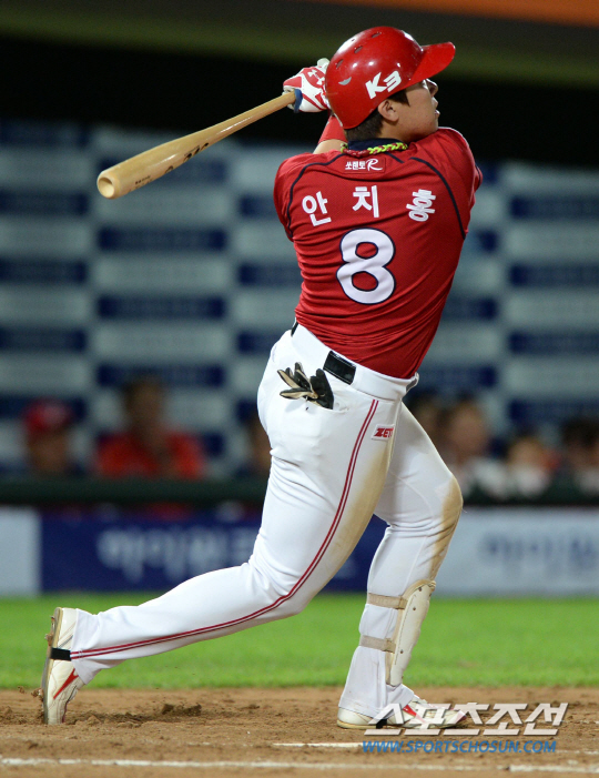 롯데의 KIA의 주중 2연전 두번째 경기가 29일 부산사직구장에서 열렸다. 7회초 1사 1루 KIA 안치홍이 롯데 심수창의 투구를 받아쳐 좌중간 담장을 넘어가는 2점홈런을 날렸다. 힘차게 스윙하는 안치홍. 부산=허상욱 기자 wook@sportschosun.com/2014.08.29/ |