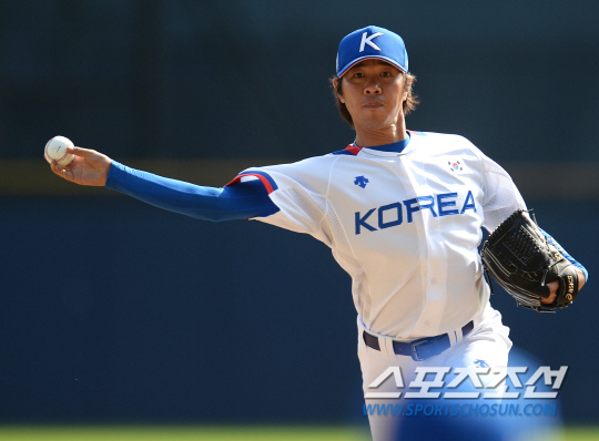 인천아시안게임에 출전하는 한국 야구대표팀 선수들이 16일 서울 잠실구장에서 공식 훈련을 시작했다. 임창용이 수비 훈련을 위해 투구를 하고 있다.