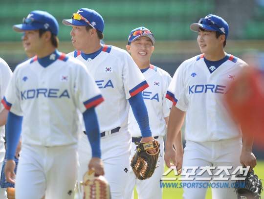 인천아시안게임에 출전하는 한국 야구대표팀 선수들이 16일 서울 잠실구장에서 공식 훈련을 시작했다. 김현수, 손아섭, 나성범 등 외야수들이 밝은 표정으로 훈련을 하고 있다.