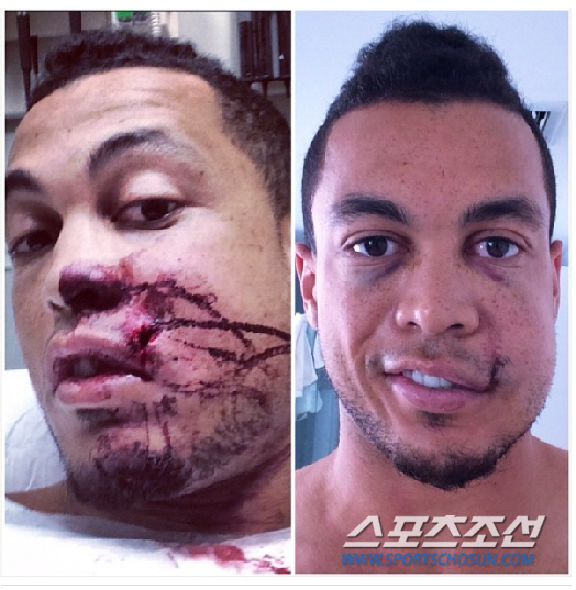 최근 강속구에 얼굴을 맞아 시즌을 접은 마이애미 말린스의 슬러거 지안카를로 스탠튼(25)이 회복돼 가고 있는 자신의 얼굴 사진을 공개했다.