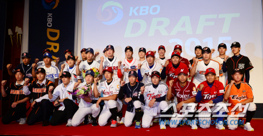 프로야구 2015년 신인드래프트 2차지명이 25일 오후 서울 역삼동 르네상스서울호텔에서 열렸다. 2차 지명된 선수들이 무대에 올라 함께 포즈를 취하고 있다. 2015년 신인 2차지명 대상자는 고등학교 및 대학교 졸업 예정자를 포함해 789명이다. 지역 연고에 관계없이 실시되는 신인 2차지명은 홀수 라운드는 전년도 성적 역순, 짝수 라운드는 전년도 성적 순으로 10라운드까지 각 구단이 1명씩 지명한다. 신생팀 kt는 1라운드 종료 후 3명의 선수를 특별지명할 수 있고 2라운드 첫 번째 지명권을 가진다. 정재근 기자cjg@sportschosun.com/2014.08.25/