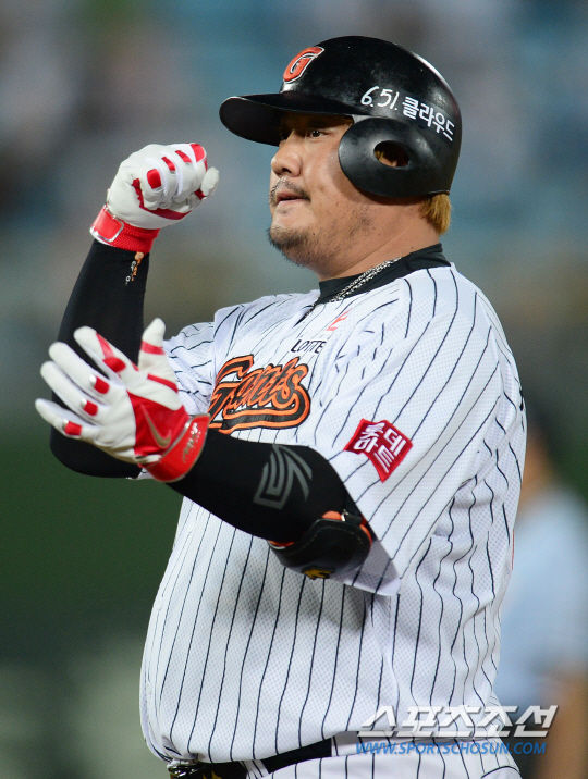 무사 만루에서 가장 강했던 건 롯데 자이언츠 4번타자 최준석이었다. 지난 8월 6일 부산 사직구장에서 열린 NC 다이노스와의 홈경기에서 3회말 무사 만루 1타점 적시타를 친 뒤 기뻐하고 있는 최준석. 부산=정재근 기자 cjg@sportschosun.com/2014.08.06/ |