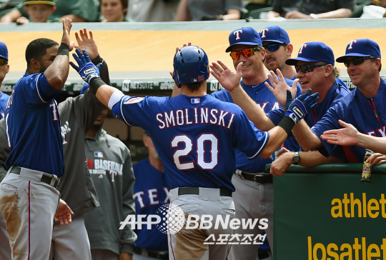텍사스는 19일(한국시각) 미국 오코 콜리세움에서 벌어진 오클랜드와의 원정 경기에서 7대2 완승을 거뒀다. 텍사스 타선은 오클랜드 에이스 소니 그래이를 무너트렸다. 그래이는 5이닝 8안타 5실점(4자책). 텍사스는 1회 그래이를 상대로 적시타 3방과 상대 실책으로 4점을 뽑아 기선을 제압했다. 또 5회 1점, 6회 2점을 더 뽑았다. 우익수이자 5번 타자 스몰린스키가 5타수 4안타 1타점의 맹타를 휘둘렀다.
