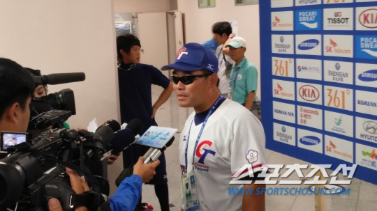대만이 야구 조별예선 B조 첫 경기에서 홍콩에 12대0으로 승리를 거뒀다. 경기 후 믹스트존에서 인터뷰를 하고 있는 루밍츠 감독. 인천=이명노 기자 nirvana@sportschosun.com