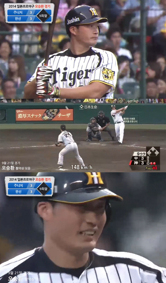 오승환은 2사 주자 없는 상황에서 타석에 서서 상대 투수 후쿠타니 고지의 초구인 시속 148㎞짜리 직구를 공략해 2루수 쪽 내야 안타로 연결했다.
