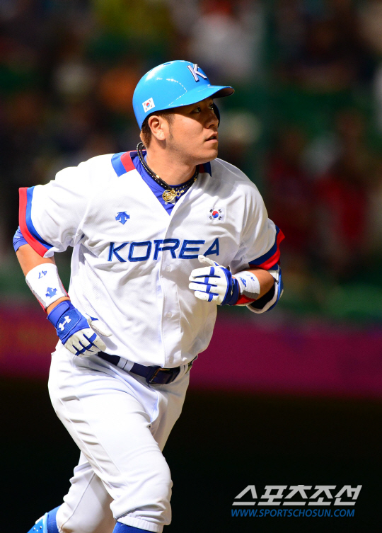 야구 대표팀이 24일 인천 문학야구장에서 2014 인천아시아경기대회 야구 B조 예선 2차전 대만과 경기를 펼쳤다. 아시안게임 금메달을 목표로 뛰고 있는 대표팀은 B조 1위를 놓고 대만과 피할 수 없는 대결을 펼쳤다. 2회 1사 만루에서 강민호가 1타점 희생플라이를 날렸다. 타구를 바라보고 있는 강민호.
