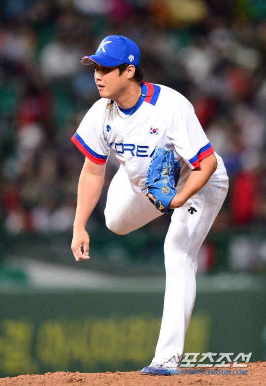 야구 대표팀이 24일 인천 문학야구장에서 2014 인천아시아경기대회 야구 B조 예선 2차전 대만과 경기를 펼쳤다. 아시안게임 금메달을 목표로 뛰고 있는 대표팀은 B조 1위를 놓고 대만과 피할 수 없는 대결을 펼쳤다. 안지만이 8회부터 마운드에 올라 투구하고 있다.