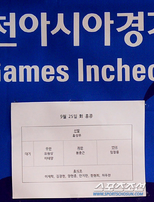 인천 아시안게임 야구대표팀이 25일 목동구장에서 홍콩과 조별리그 3차전 경기를 펼쳤다. 한국 덕아웃에 투수진 운용 계획이 적힌 종이가 붙여져 있다.