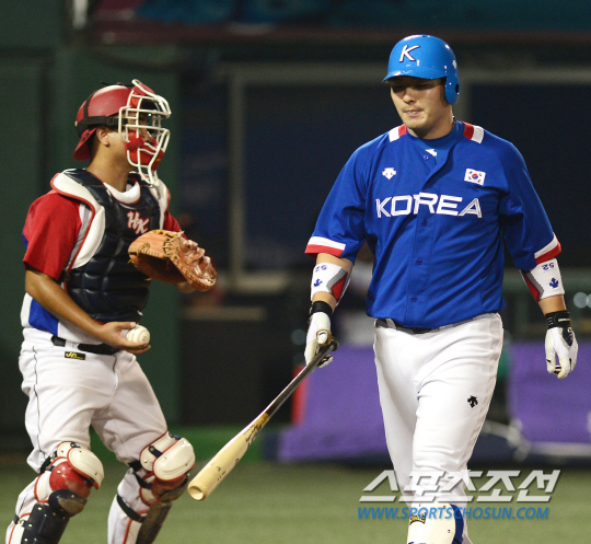 인천 아시안게임 야구대표팀이 25일 목동구장에서 홍콩과 조별리그 3차전 경기를 펼쳤다. 6회초 무사 박병호가 볼넷을 얻어내 걸어나가고 있다.