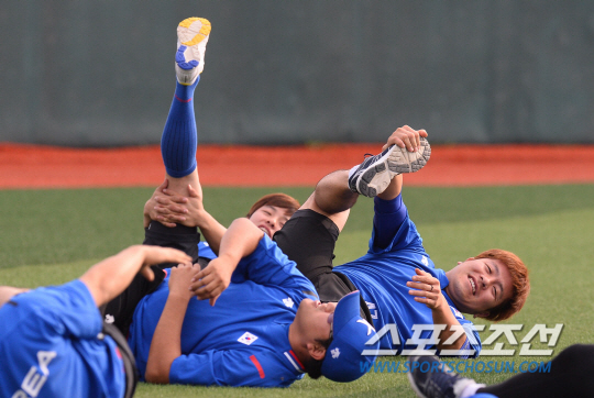 중국과의 준결승 경기를 앞둔 2014인천아시안게임 한국야구대표팀 강민호가 26일 인천 송도LNG구장에서 훈련에 매진하고 있다.