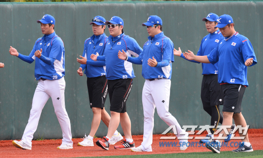 [AG포토] 야구대표팀 김광현 '팔근육을 부드럽게~'