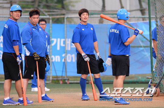 중국과의 준결승 경기를 앞둔 2014인천아시안게임 한국야구대표팀 선수들이 26일 인천 송도LNG구장에서 훈련에 매진하고 있다.
