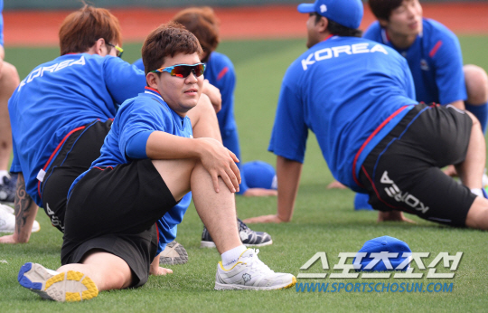 중국과의 준결승 경기를 앞둔 2014인천아시안게임 한국야구대표팀 김민성이 26일 인천 송도LNG구장에서 훈련에 매진하고 있다.