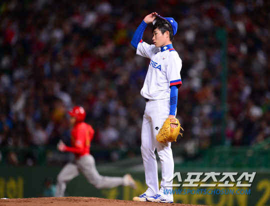 27일 인천 문학야구장에서 2014 인천아시아경기대회 야구 준결승전 대한민국과 중국의 경기가 열렸다. 대만은 일본과의 준결승 경기에서 10대4로 승리하며 결승전에 진출했다. 이재학이 3회 2사 3루에서 중국 취샤오에게 동점 적시 2루타를 허용했다. 아쉬운 표정을 짓고 있는 이재학.