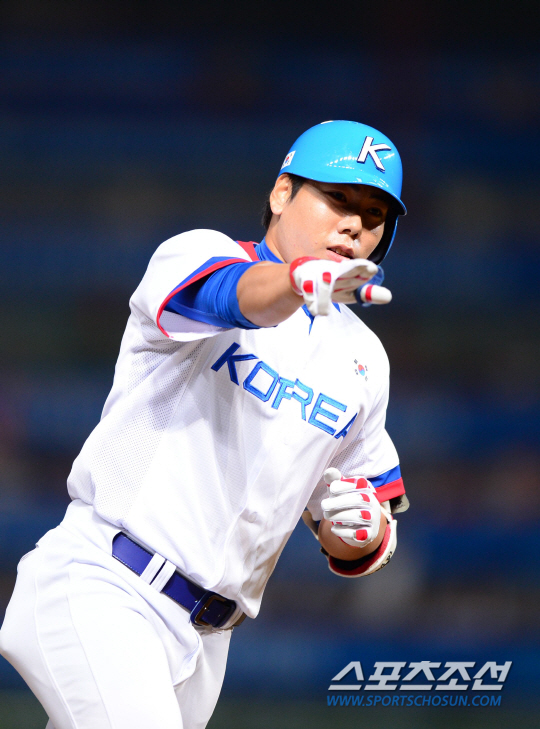 27일 인천 문학야구장에서 2014 인천아시아경기대회 야구 준결승전 대한민국과 중국의 경기가 열렸다. 대만은 일본과의 준결승 경기에서 10대4로 승리하며 결승전에 진출했다. 강정호가 3회 솔로 홈런을 날렸다. 그라운드를 돌며 동료들을 가리키고 있는 강정호.