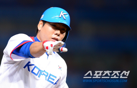 27일 인천 문학야구장에서 2014 인천아시아경기대회 야구 준결승전 대한민국과 중국의 경기가 열렸다. 대만은 일본과의 준결승 경기에서 10대4로 승리하며 결승전에 진출했다. 강정호가 3회 솔로 홈런을 날렸다. 그라운드를 돌며 동료들을 가리키고 있는 강정호.