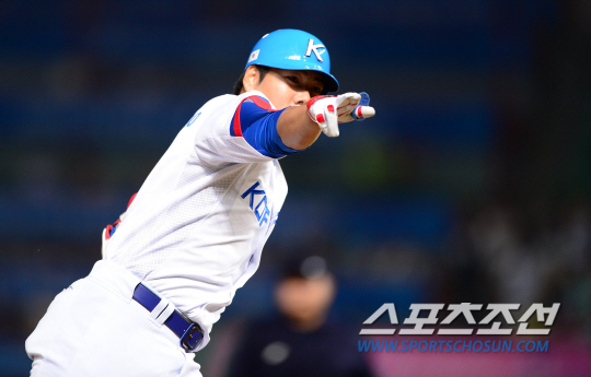 27일 인천 문학야구장에서 2014 인천아시아경기대회 야구 준결승전 대한민국과 중국의 경기가 열렸다. 대만은 일본과의 준결승 경기에서 10대4로 승리하며 결승전에 진출했다. 강정호가 3회 솔로 홈런을 날렸다. 그라운드를 돌며 동료들을 가리키고 있는 강정호.