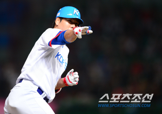 27일 인천 문학야구장에서 2014 인천아시아경기대회 야구 준결승전 대한민국과 중국의 경기가 열렸다. 대만은 일본과의 준결승 경기에서 10대4로 승리하며 결승전에 진출했다. 강정호가 3회 솔로 홈런을 날렸다. 그라운드를 돌며 동료들을 가리키고 있는 강정호.