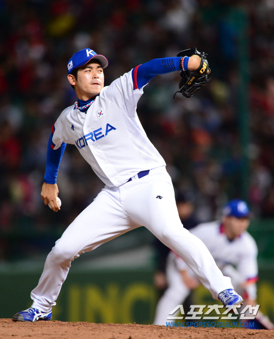 27일 인천 문학야구장에서 2014 인천아시아경기대회 야구 준결승전 대한민국과 중국의 경기가 열렸다. 대만은 일본과의 준결승 경기에서 10대4로 승리하며 결승전에 진출했다. 5회 이재학에 이어 마운드에 오른 이태양이 힘차게 투구하고 있다.