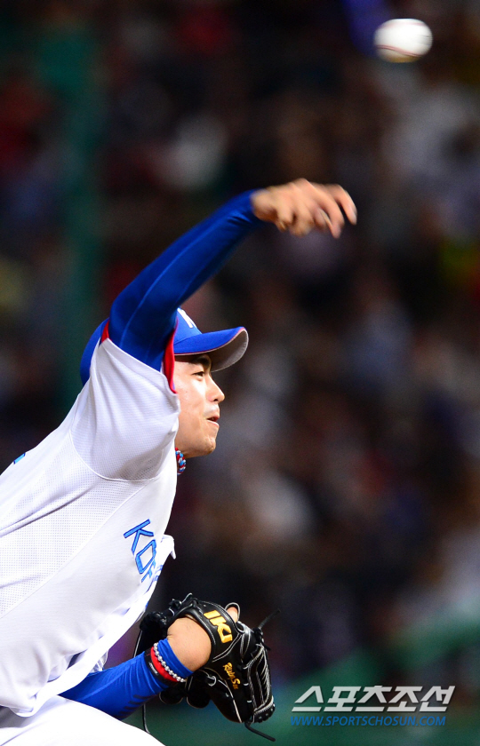 27일 인천 문학야구장에서 2014 인천아시아경기대회 야구 준결승전 대한민국과 중국의 경기가 열렸다. 대만은 일본과의 준결승 경기에서 10대4로 승리하며 결승전에 진출했다. 5회 이재학에 이어 마운드에 오른 이태양이 힘차게 투구하고 있다.